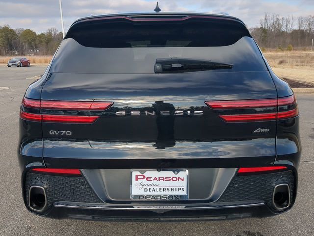 4 new tires! A 2024 Genesis GV70 2.5 Advanced is a luxury compact SUV that features a powerful 300-hp turbocharged engine, leather seating, a surround-view monitor, and all-wheel drive, with the specified vehicle also being a local trade with four new tires. Vehicle Specifications The 2024 Genesis GV70 2.5T Advanced features a robust powertrain and all-wheel drive as standard. Engine: 2.5L turbocharged inline 4-cylinder engine (300 horsepower, 311 lb-ft of torque). Transmission: 8-speed automatic with SHIFTRONIC and paddle shifters. Drivetrain: All-Wheel Drive (AWD) is standard. Performance: Capable of 0 to 60 mph in under six seconds. Fuel Economy: An EPA-estimated 22 city / 28 highway MPG. Towing Capacity: Maximum capacity of 3,500 lbs when equipped with trailer brakes. Advanced Package Features The Advanced Package builds on the already well-equipped standard and Select trims, adding significant comfort and technology upgrades. Interior Upholstery: Upgrades from leatherette to genuine leather seating surfaces. Comfort: Includes ventilated front seats and a heated steering wheel. Audio System: Features a premium Lexicon audio system with 16 speakers for an immersive sound experience. Driver Assistance & Safety: Surround View Monitor and Blind-Spot View Monitor. Parking Collision-Avoidance Assist Reverse (helps with backing up safely). Parking Distance Warning for both forward and reverse movements. Advanced Rear Occupant Alert., 2nd Row 110V AC Power Outlet, 4-Way Power Lumbar Front Passenger Seat, Adjustable Interior Ambient Lighting, Advanced Package, Advanced Rear Occupant Alert, Blind-Spot View Monitor, Forward/Reverse Parking Distance Warning, Option Group 03, Reverse Parking Collision-Avoidance Assist, Surround View Monitor.